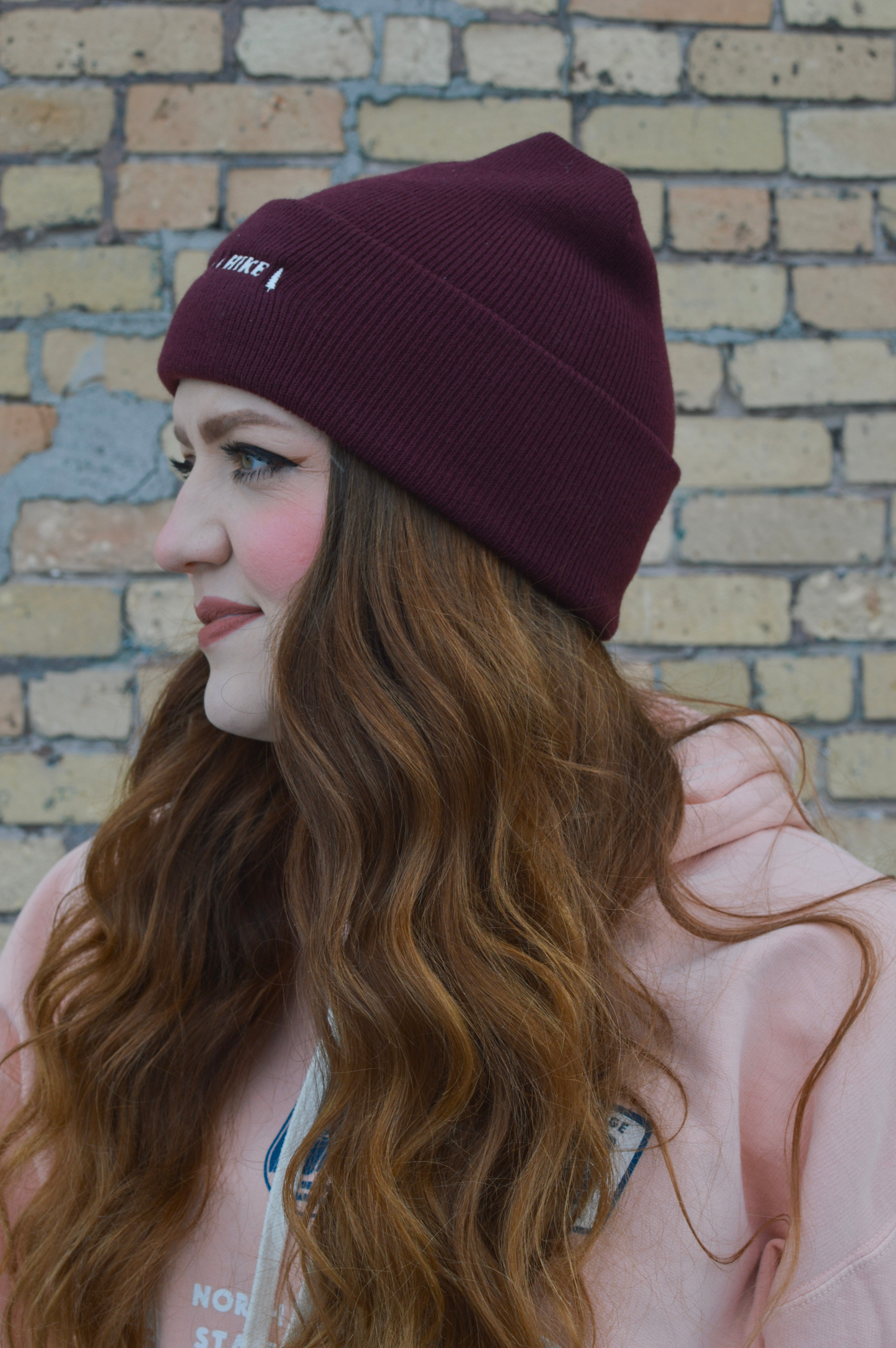 This Embroidered Beanie features the words "Take A Hike" in white with lone pine trees on both sides of the words. Keep your head cozy while you take their advice!