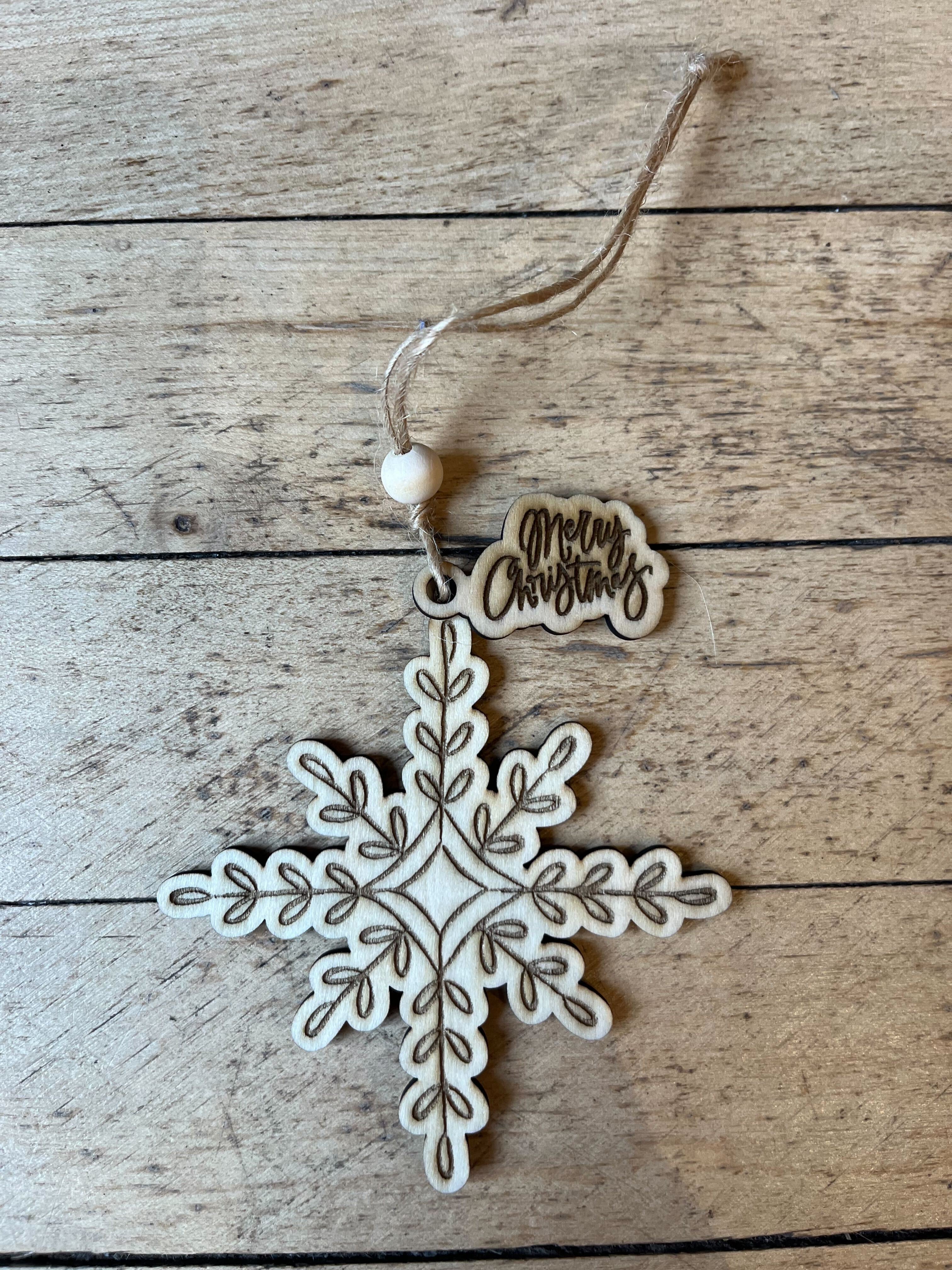 "Star Ornament - Merry Christmas” Engraved Wood Ornaments